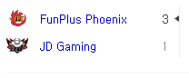 먼저 FPX와 JDG의 게임스코어는 3대 1의 결과가 나왔습니다.